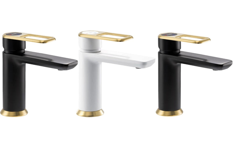 Abode Levarto collection is available in Matt Black & Matt White, noth are complimented with brushed brass trims.