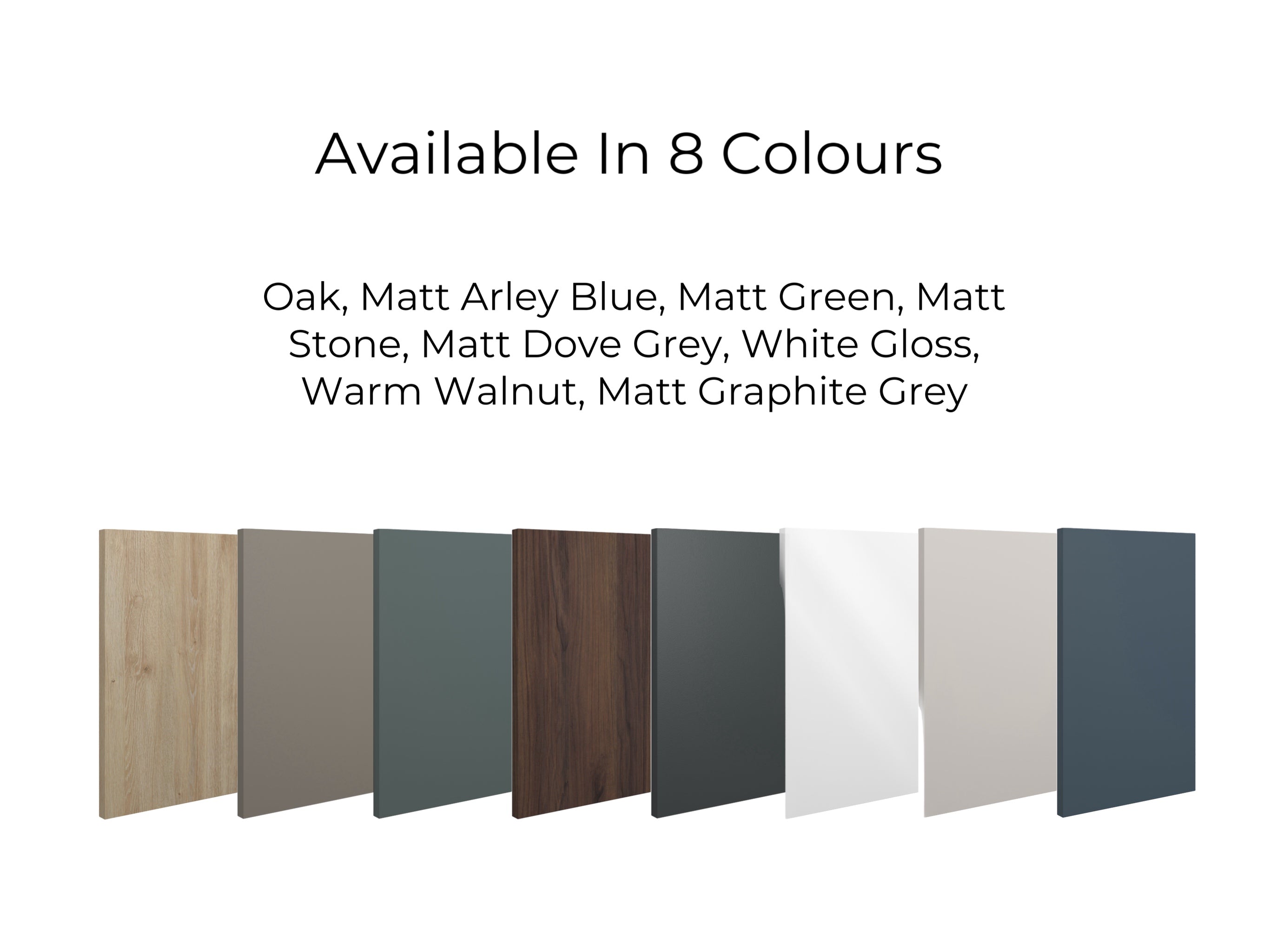 Available in White Gloss, Matt Anthracite, Matt Green, Matt Arley Blue, Matt Stone, Matt Dove Grey, Warm Walnut & Oak.