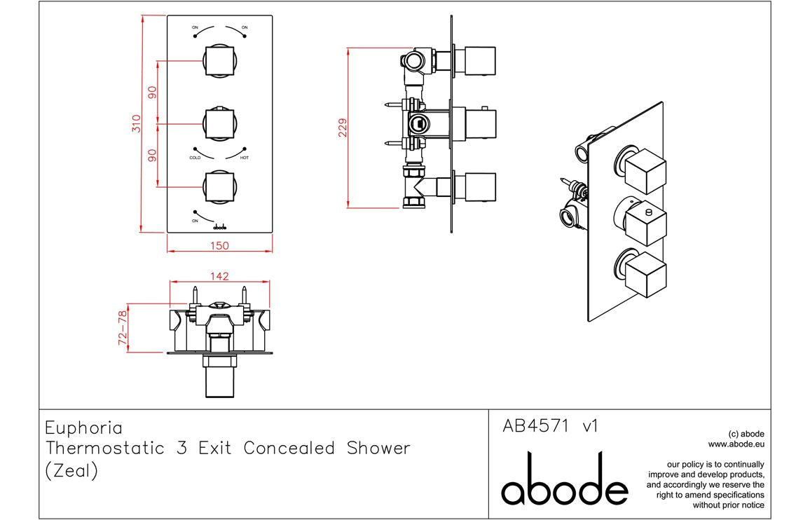 Abode Zeal Concealed Shower (3 Exit) - Chrome