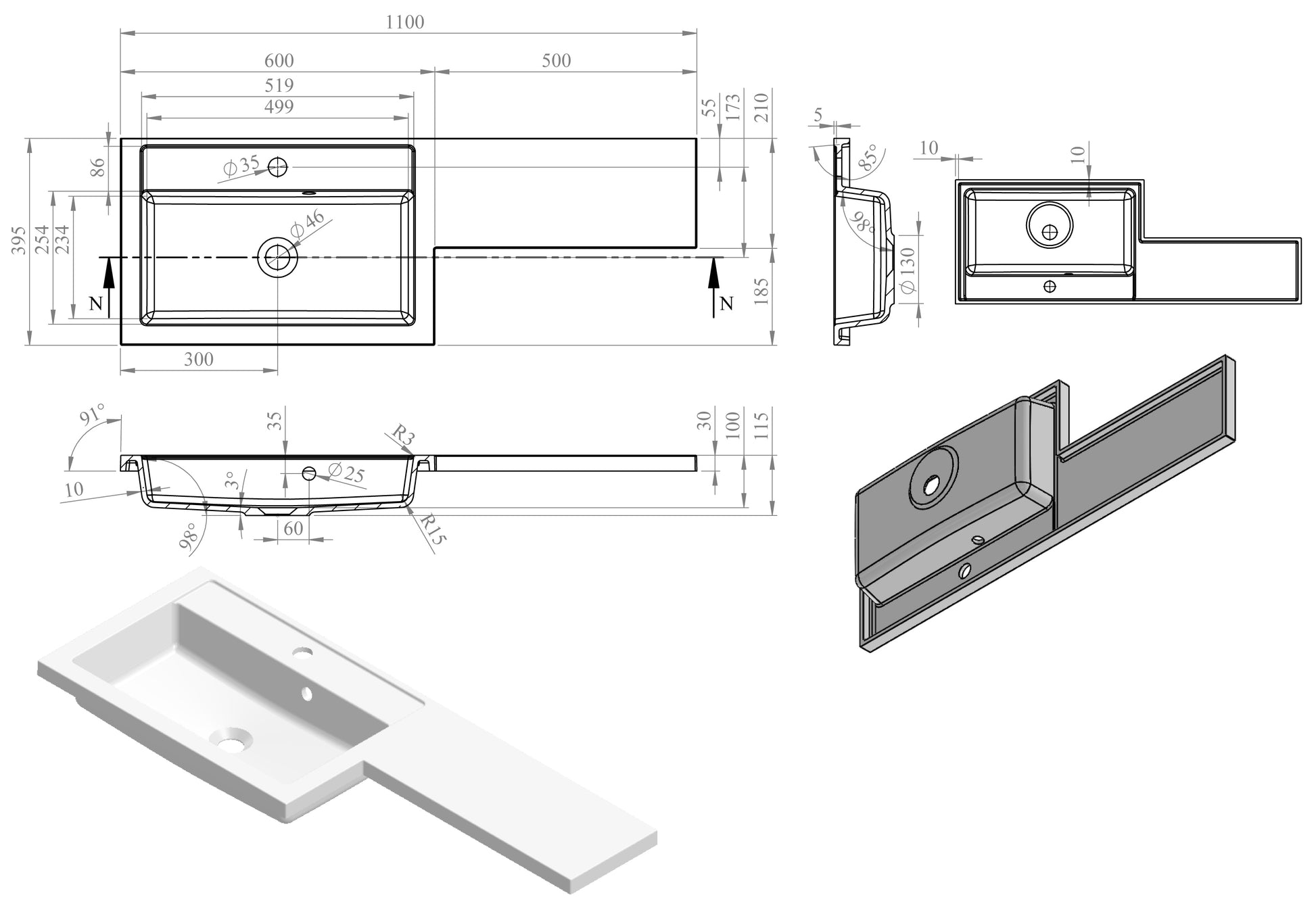 - Venessa 1000mm Floor Standing L-Shape Pack & Basin (LH or RH) - White Gloss